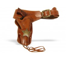 Красивый коричневый патронташ кожаный со значком шерифа для 1 револьвера с 24 патронами в комплекте...