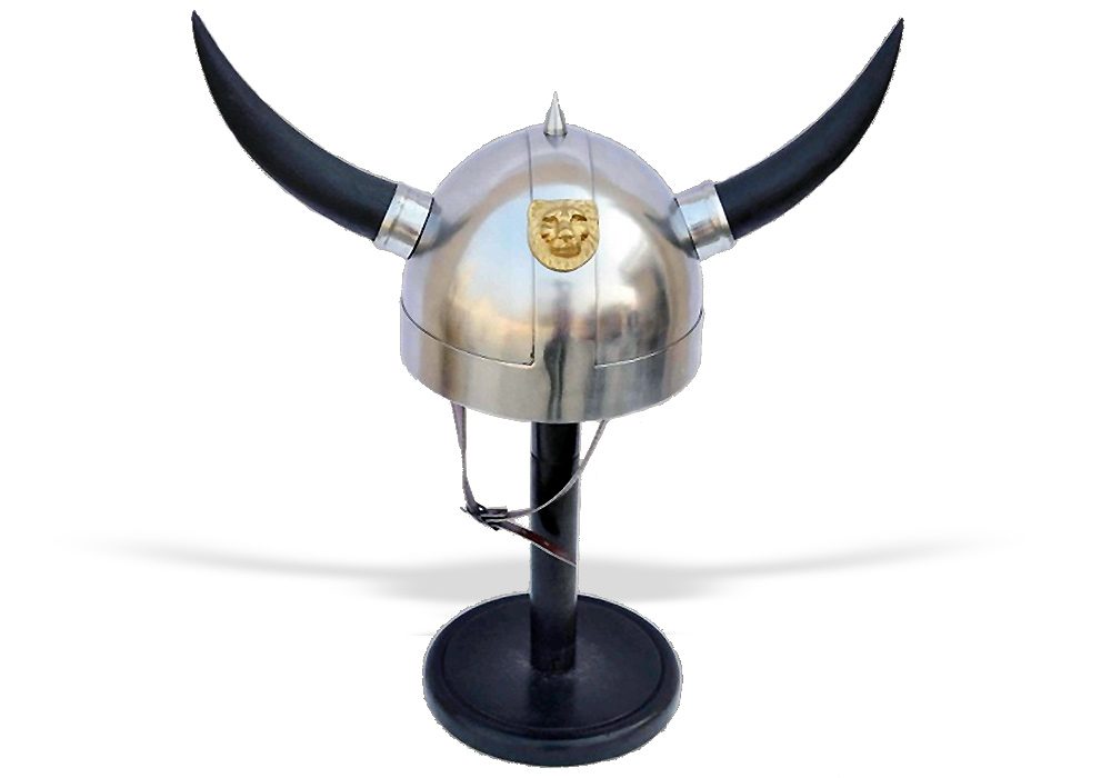 Производство: Индия | Материал: сталь, декоративные рога, латунный медальон | Комплект: шлем + подставка